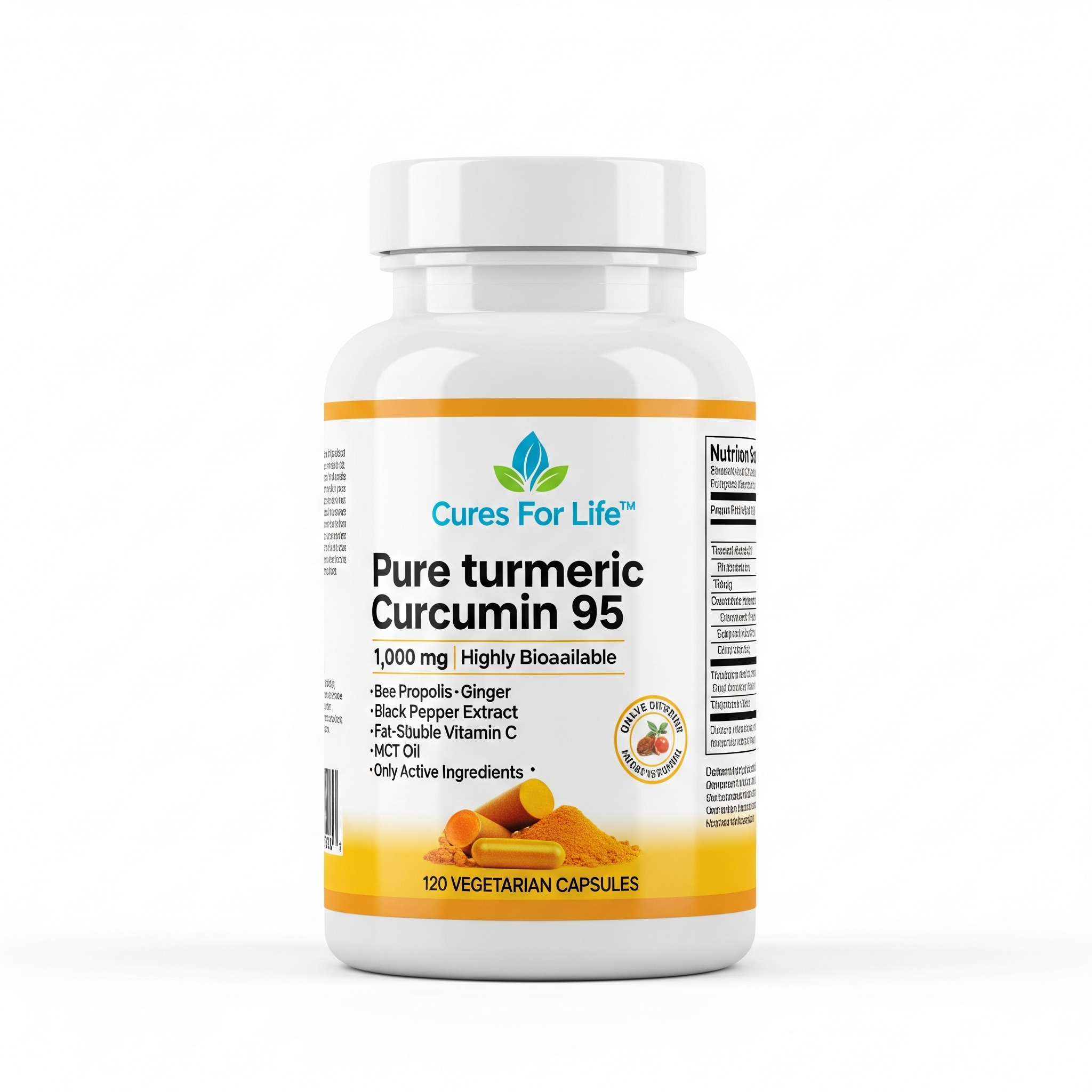 Turmeric Curcumin 1,000mg – 95% Curcuminoids with Black Pepper & MCT Oil – Enhanced Absorption – No Fillers, Non-GMO – 120 Vegetarian Capsules